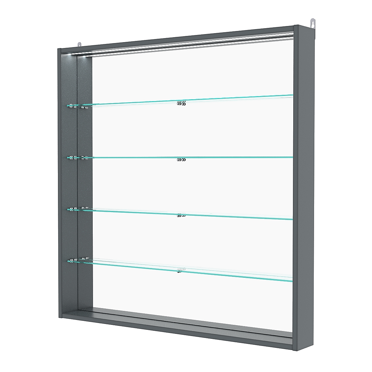 Витрина настенная №4-4ГУ с зеркалом и с подсветкой, Темно-Серый