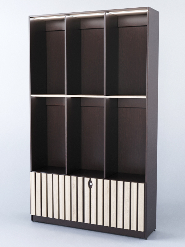 Корпус и фасадные накладки (50х16мм, расстояние между рейками — 20мм) выполнены из ЛДСП.