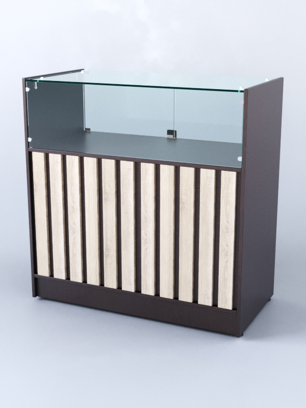 Прилавок со стеклом Смоки №4, Дуб Венге + Дуб Сонома