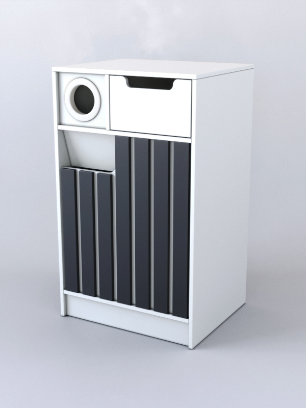 Корпус и фасадные накладки (50х16мм, расстояние между рейками — 20мм) выполнены из ЛДСП.