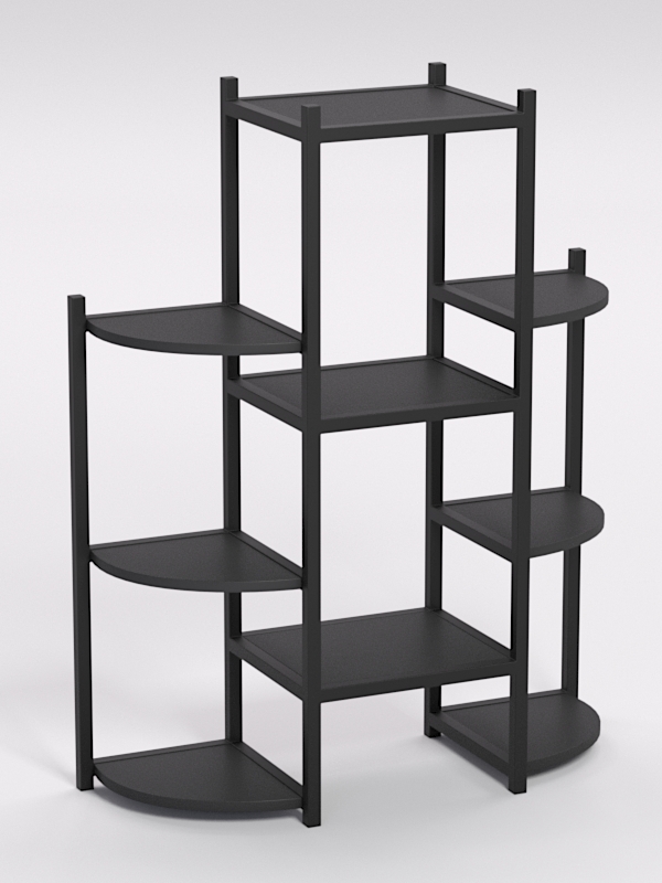 Данное изделие состоит из девяти открытых полок. Два боковых блока (по три полки в каждом) длиной в 208мм и шириной в 248мм и основной блок (состоит из трех полок) длиной в 294мм и шириной в 244м будут прекрасной поверхностью для размещения цветочных горшков, ваз и так далее.