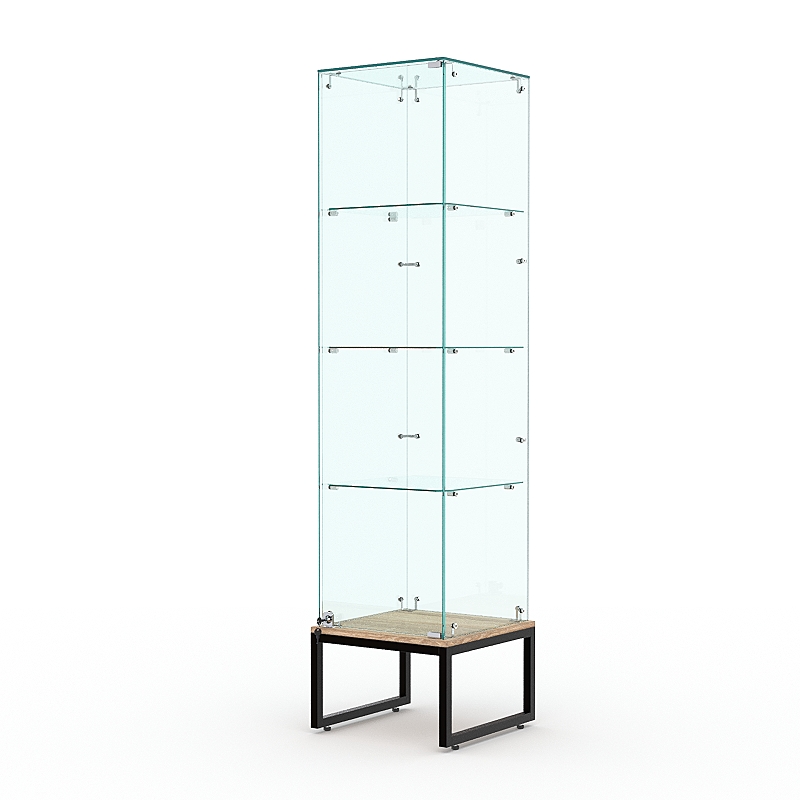 Стеклянная витрина на металлическом основании из сварной профильной трубы 25х25мм, покрытой порошковой краской украсит интерьер книжного, художественного, парфюмерного магазина.