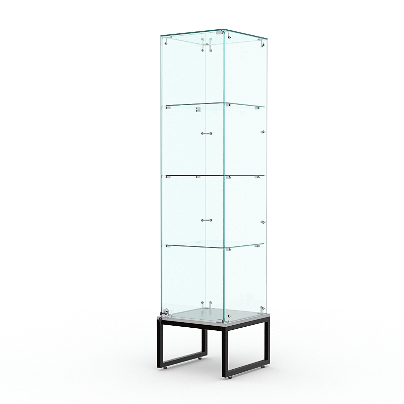 Стеклянная витрина на металлическом основании из сварной профильной трубы 25х25мм, покрытой порошковой краской украсит интерьер книжного, художественного, парфюмерного магазина.