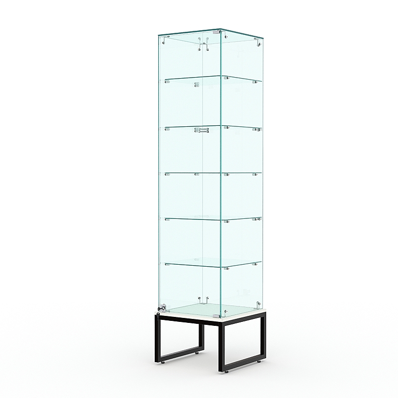 Стеклянная витрина на металлическом основании из сварной профильной трубы 25х25мм, покрытой порошковой краской украсит интерьер книжного, художественного, парфюмерного магазина.