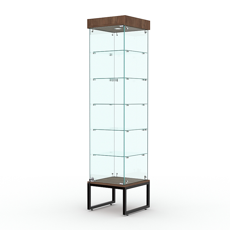 Витрина стеклянная "ЛОФТ СТИЛЬ ПОДИУМ" №510-Ф (с дверкой, задняя стенка — стекло), Орех