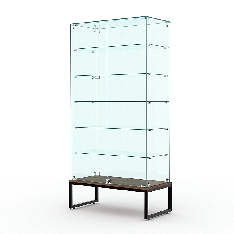Витрина стеклянная "ЛОФТ СТИЛЬ ПОДИУМ" №509 (с дверками, задняя стенка — стекло), Орех