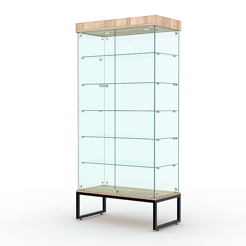 Витрина стеклянная "ЛОФТ СТИЛЬ ПОДИУМ" №509-Ф (с дверками, задняя стенка — стекло), Дуб Сонома