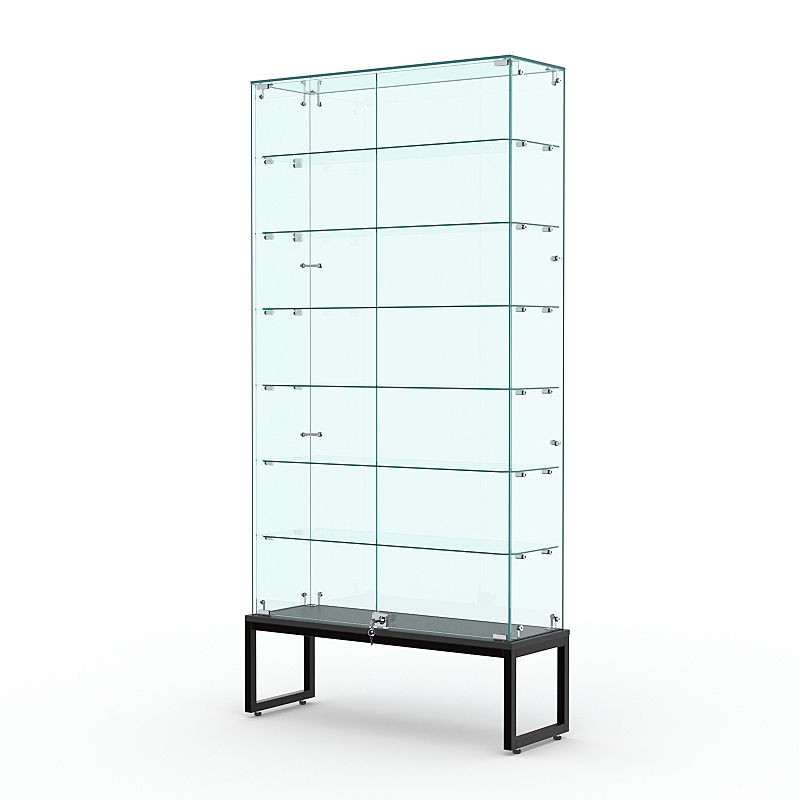 Витрина стеклянная "ЛОФТ СТИЛЬ ПОДИУМ" №35 (с дверками, задняя стенка — стекло), Черный