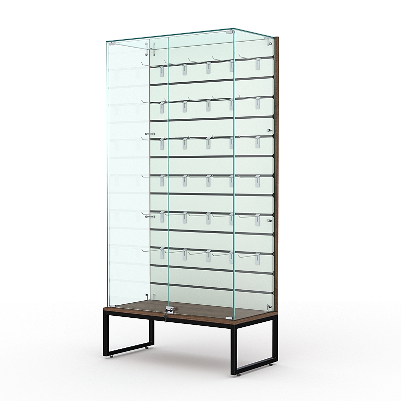 Витрина стеклянная ЛОФТ СТИЛЬ ПОДИУМ №9-ЭП (с дверками, задняя стенка — экономпанель), Орех