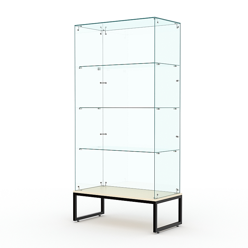 Витрины стеклянные серии «ЛОФТ СТИЛЬ ПОДИУМ» представляют собой отличный вариант недорогих витрин с абсолютно прозрачными стенками. Витрина расположена на металическом основании из сварной профильной трубы 25х25мм, покрытой порошковой краской.