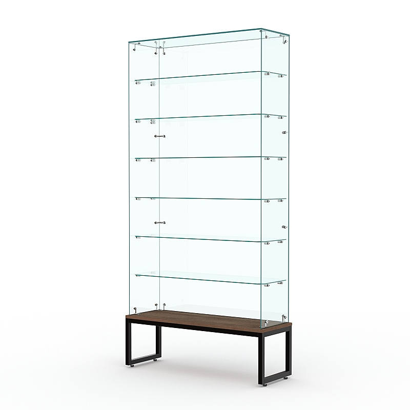 Витрина стеклянная ЛОФТ СТИЛЬ ПОДИУМ №135 (без дверок, задняя стенка — стекло), Орех