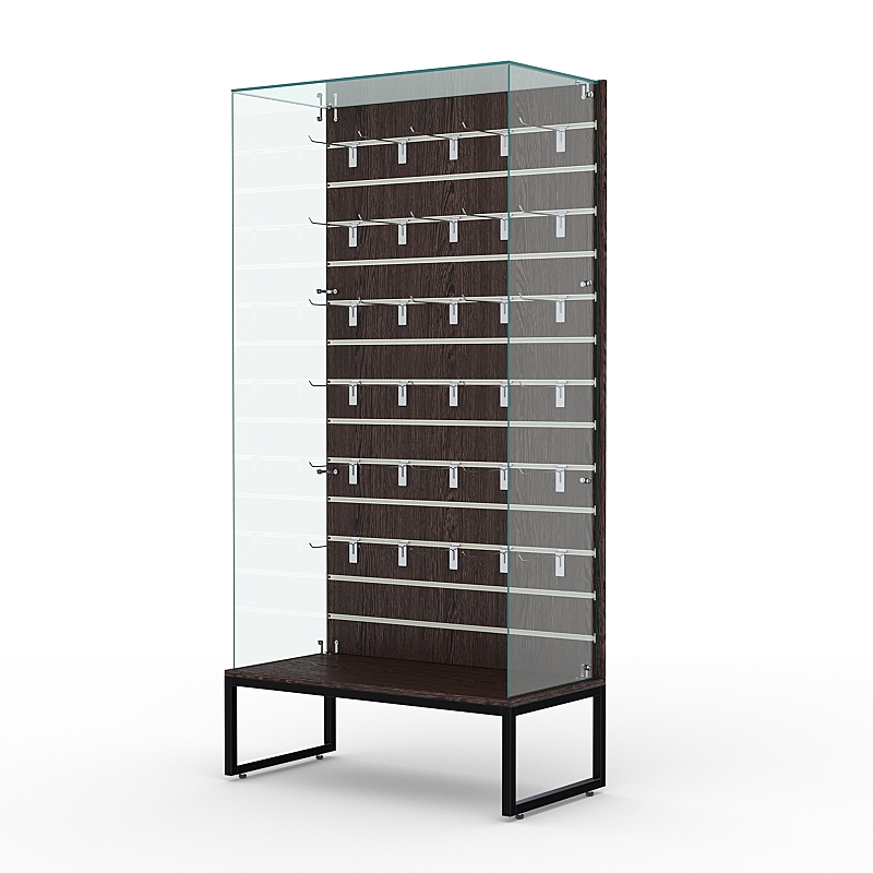 Витрина стеклянная "ЛОФТ СТИЛЬ ПОДИУМ" №109-ЭП (без дверок, задняя стенка — экономпанель), Дуб Венге
