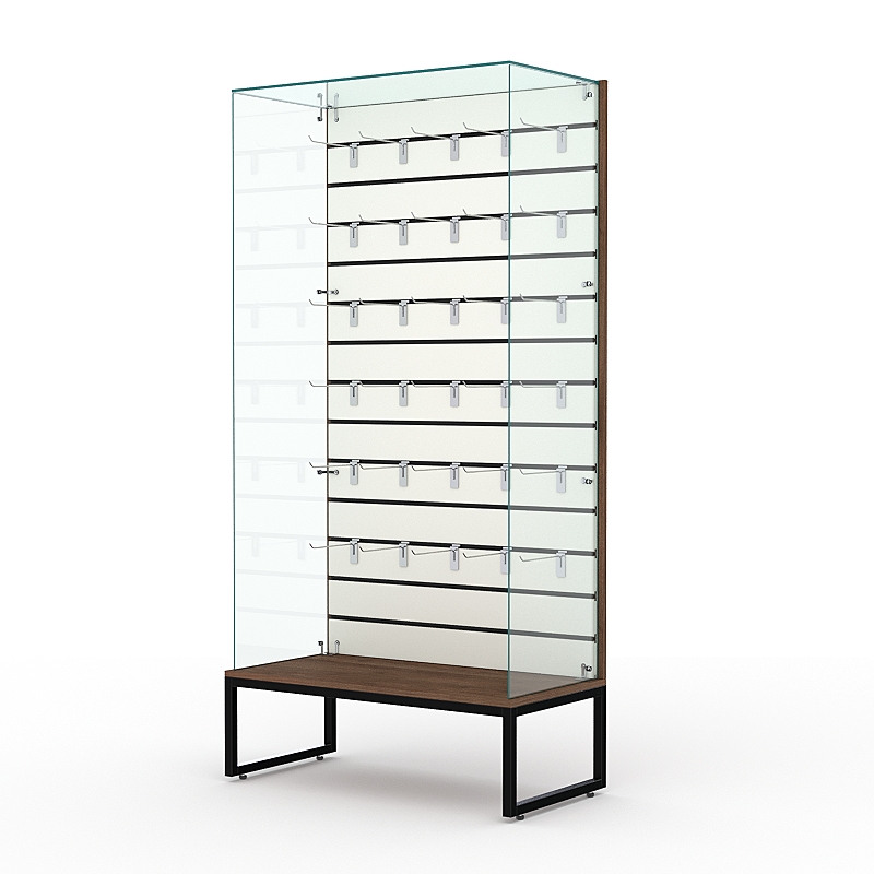 Витрина стеклянная "ЛОФТ СТИЛЬ ПОДИУМ" №109-ЭП (без дверок, задняя стенка — экономпанель), Орех