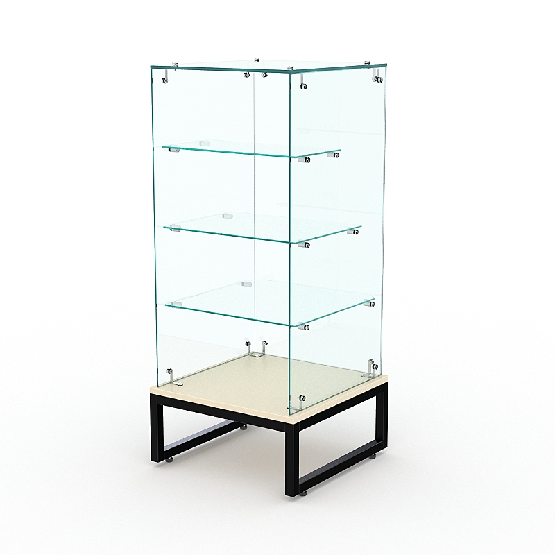 Торговый стеклянный прилавок с фасадным стеклом по форме напоминающей куб — это специализированное оборудование, используемое в магазинах и торговых точках для демонстрации и продажи товаров. Фасадное стекло расположено под углом, что обеспечивает лучший обзор товаров для покупателей. Такие прилавки часто используются в продуктовых магазинах, супермаркетах и бутиках.