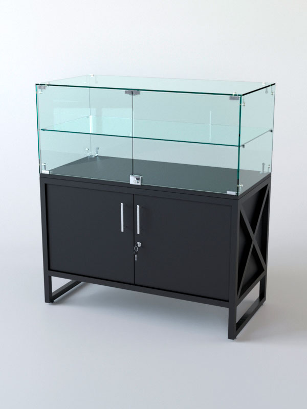 Торговый прилавок. Стеклянная полка и основание придают прилавку эстетичный вид и увеличивают его функциональность. Стекло позволяет демонстрировать товары, не закрывая их от покупателей, и создаёт ощущение лёгкости и воздушности конструкции. Основание из стекла делает прилавок устойчивым и надёжным, а также облегчает уборку поверхности.