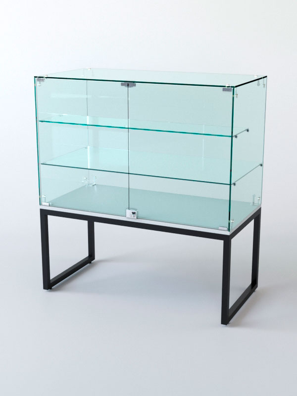 Торговый прилавок. Стеклянная полка и основание придают прилавку эстетичный вид и увеличивают его функциональность. Стекло позволяет демонстрировать товары, не закрывая их от покупателей, и создаёт ощущение лёгкости и воздушности конструкции. Основание из стекла делает прилавок устойчивым и надёжным, а также облегчает уборку поверхности.