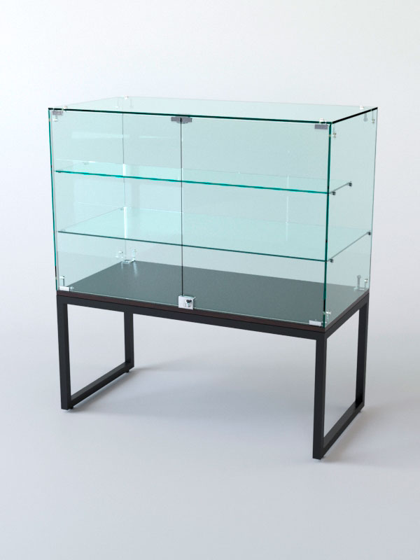 Торговый прилавок. Стеклянная полка и основание придают прилавку эстетичный вид и увеличивают его функциональность. Стекло позволяет демонстрировать товары, не закрывая их от покупателей, и создаёт ощущение лёгкости и воздушности конструкции. Основание из стекла делает прилавок устойчивым и надёжным, а также облегчает уборку поверхности.