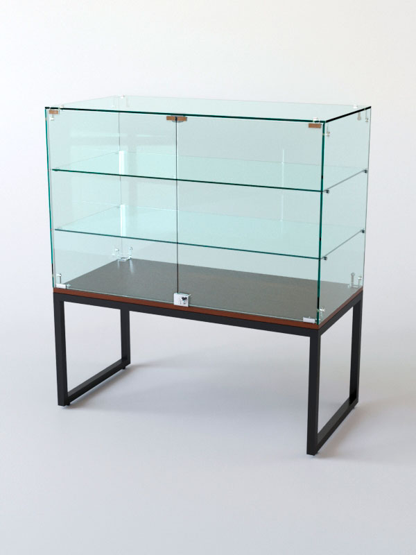 Торговый прилавок. Стеклянная полка и основание придают прилавку эстетичный вид и увеличивают его функциональность. Стекло позволяет демонстрировать товары, не закрывая их от покупателей, и создаёт ощущение лёгкости и воздушности конструкции. Основание из стекла делает прилавок устойчивым и надёжным, а также облегчает уборку поверхности.
