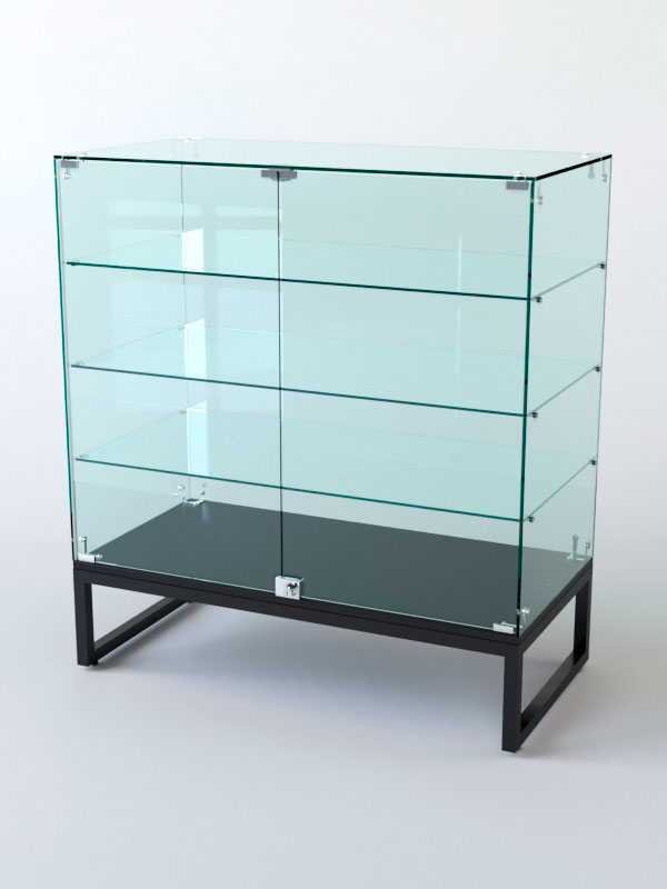 Торговый прилавок. Стеклянная полка и основание придают прилавку эстетичный вид и увеличивают его функциональность. Стекло позволяет демонстрировать товары, не закрывая их от покупателей, и создаёт ощущение лёгкости и воздушности конструкции. Основание из стекла делает прилавок устойчивым и надёжным, а также облегчает уборку поверхности.