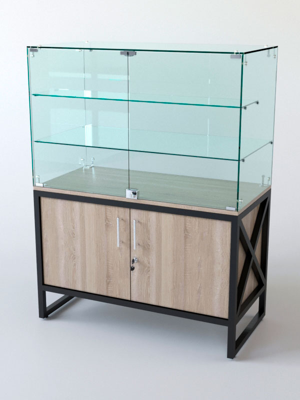 Торговый прилавок. Стеклянная полка и основание придают прилавку эстетичный вид и увеличивают его функциональность. Стекло позволяет демонстрировать товары, не закрывая их от покупателей, и создаёт ощущение лёгкости и воздушности конструкции. Основание из стекла делает прилавок устойчивым и надёжным, а также облегчает уборку поверхности.