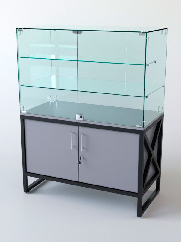 Торговый прилавок. Стеклянная полка и основание придают прилавку эстетичный вид и увеличивают его функциональность. Стекло позволяет демонстрировать товары, не закрывая их от покупателей, и создаёт ощущение лёгкости и воздушности конструкции. Основание из стекла делает прилавок устойчивым и надёжным, а также облегчает уборку поверхности.
