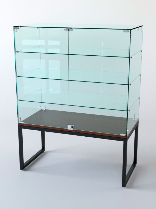 Торговый прилавок. Стеклянная полка и основание придают прилавку эстетичный вид и увеличивают его функциональность. Стекло позволяет демонстрировать товары, не закрывая их от покупателей, и создаёт ощущение лёгкости и воздушности конструкции. Основание из стекла делает прилавок устойчивым и надёжным, а также облегчает уборку поверхности.