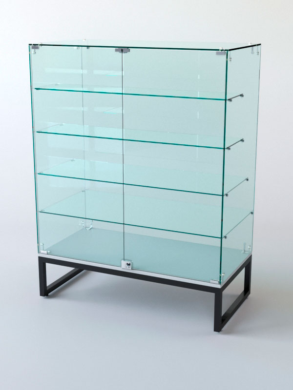 Торговый прилавок. Стеклянная полка и основание придают прилавку эстетичный вид и увеличивают его функциональность. Стекло позволяет демонстрировать товары, не закрывая их от покупателей, и создаёт ощущение лёгкости и воздушности конструкции. Основание из стекла делает прилавок устойчивым и надёжным, а также облегчает уборку поверхности.