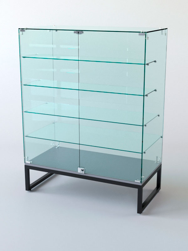 Торговый прилавок. Стеклянная полка и основание придают прилавку эстетичный вид и увеличивают его функциональность. Стекло позволяет демонстрировать товары, не закрывая их от покупателей, и создаёт ощущение лёгкости и воздушности конструкции. Основание из стекла делает прилавок устойчивым и надёжным, а также облегчает уборку поверхности.