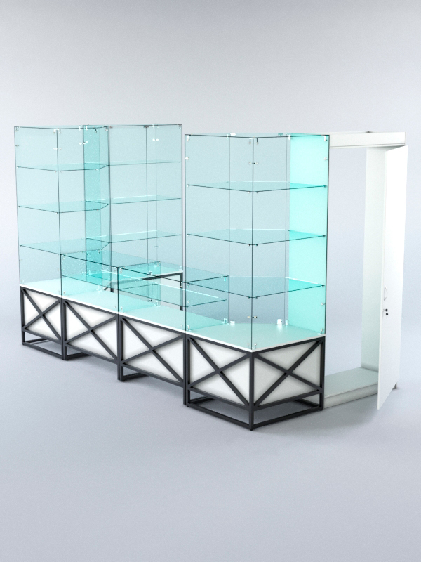 Торговый пристенный павильон — оборудование для продажи косметических средств, мелкой техники, аксессуаров, продуктов питания, печатных изданий. Подойдет для размещения в ТЦ и аэропорту.