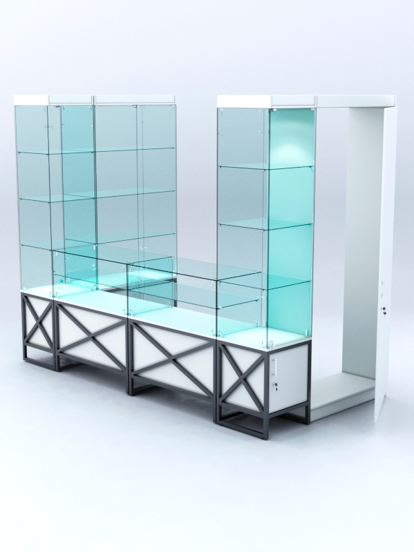 Торговый пристенный павильон — оборудование для продажи косметических средств, мелкой техники, аксессуаров, продуктов питания, печатных изданий. Подойдет для размещения в ТЦ и аэропорту.