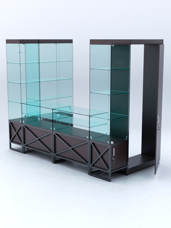 Торговый пристенный павильон — оборудование для продажи косметических средств, мелкой техники, аксессуаров, продуктов питания, печатных изданий. Подойдет для размещения в ТЦ и аэропорту.