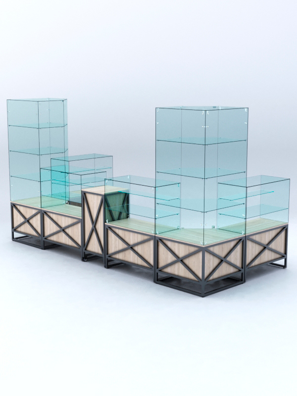 Торговый пристенный павильон — оборудование для продажи косметических средств, мелкой техники, аксессуаров, продуктов питания, печатных изданий. Подойдет для размещения в ТЦ и аэропорту.