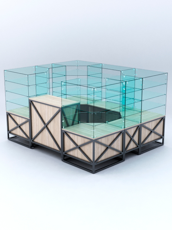 Павильоны ЛОФТ СТИЛЬ в центр зала №1 — предназначен для использования в центральном месте зала, где осуществляется торговля. Для составления модели используют витрины одноименной серии, а также выкатные прилавки.