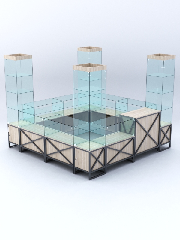 Павильоны «ЛОФТ СТИЛЬ» комплектуются из витрин и прилавков серии «ЛОФТ СТИЛЬ».