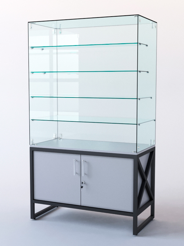 Витрина стеклянная "ЛОФТ СТИЛЬ" островная №204 (без дверок, фасад — стекло), Серый