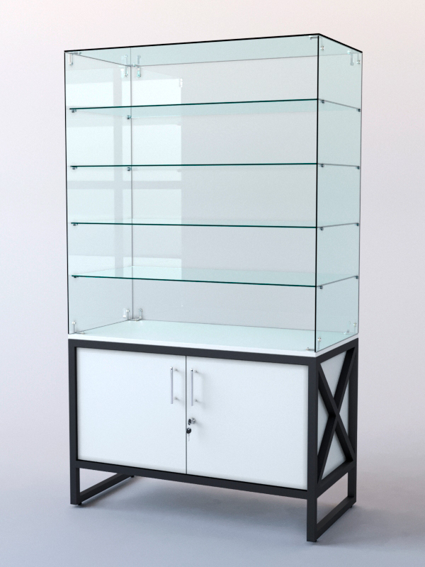 Витрина стеклянная ЛОФТ СТИЛЬ островная №224 (без дверок, фасад — стекло), Белый