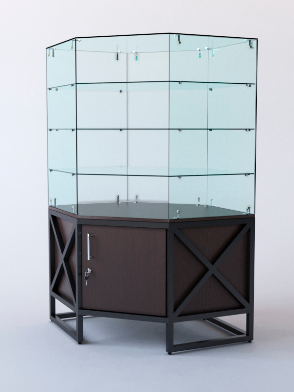 Витрина стеклянная "ЛОФТ СТИЛЬ" островная №207 (без дверки, фасад — стекло), Дуб Венге