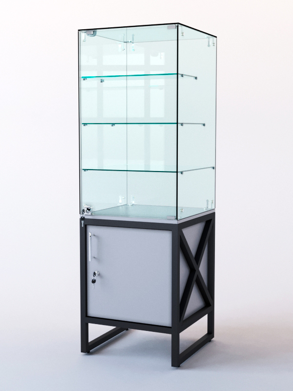 Витрина стеклянная "ЛОФТ СТИЛЬ" островная №306 (с дверкой, фасад — стекло), Серый