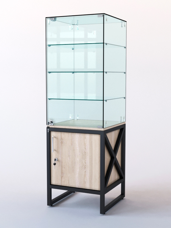 Витрина стеклянная "ЛОФТ СТИЛЬ" островная №326 (с дверкой, фасад -стекло), Дуб Сонома