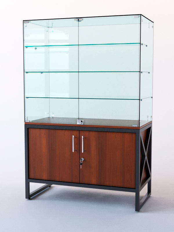 Витрина стеклянная "ЛОФТ СТИЛЬ" островная №301 (с дверками, фасад — стекло), Орех