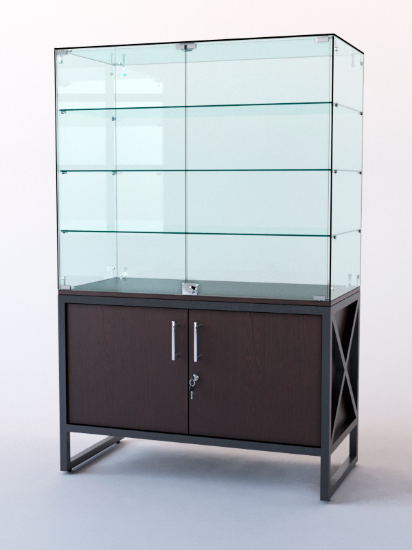 Витрина стеклянная "ЛОФТ СТИЛЬ" островная №321 (с дверками, фасад — стекло), Дуб Венге