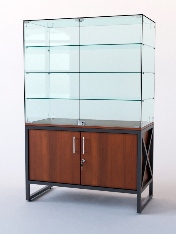 Витрина стеклянная "ЛОФТ СТИЛЬ" островная №321 (с дверками, фасад — стекло), Орех