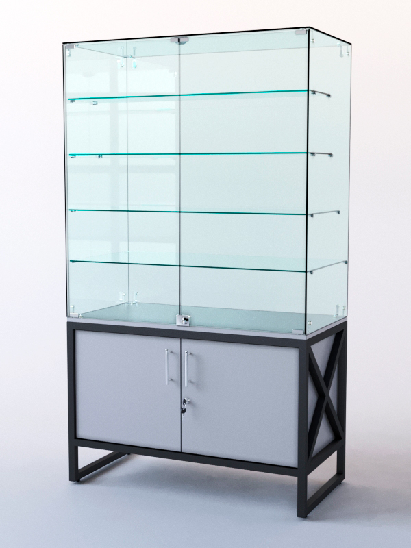 Витрина стеклянная "ЛОФТ СТИЛЬ" островная №304 (с дверками, фасад — стекло), Серый