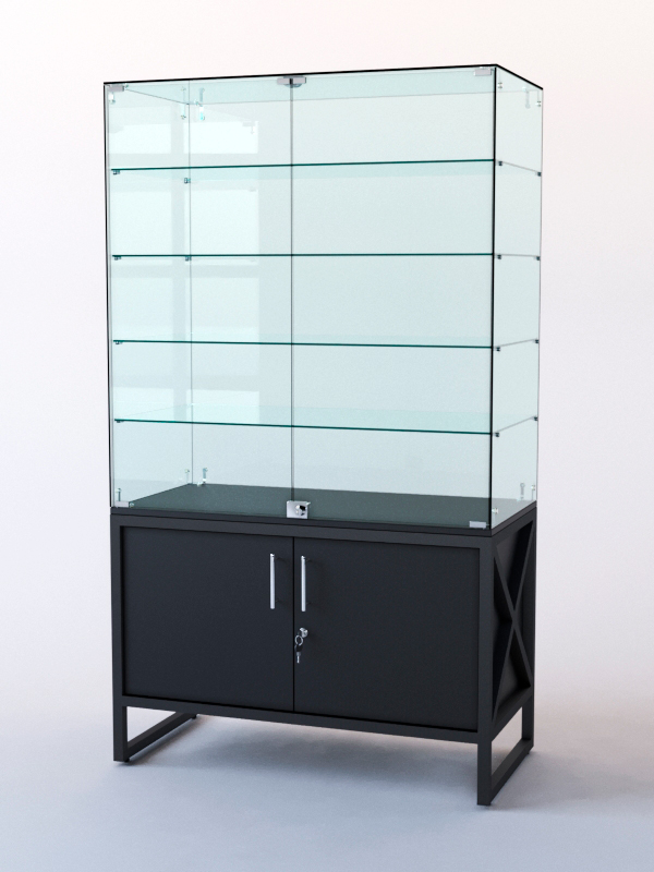 Витрина стеклянная "ЛОФТ СТИЛЬ" островная №324 (с дверками, фасад — стекло), Черный