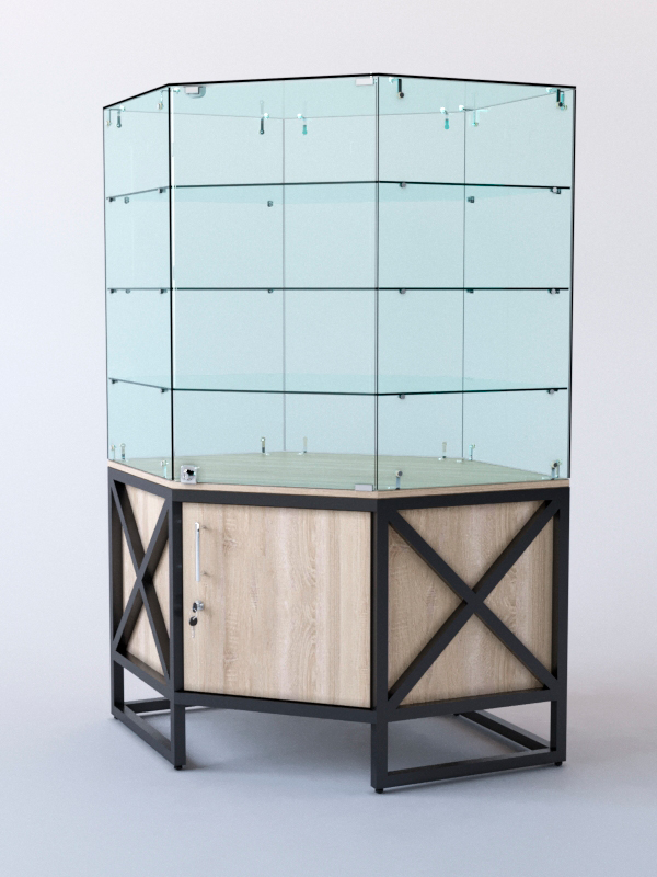Витрина стеклянная "ЛОФТ СТИЛЬ" островная №307 (с дверкой, фасад стекло), Дуб Сонома