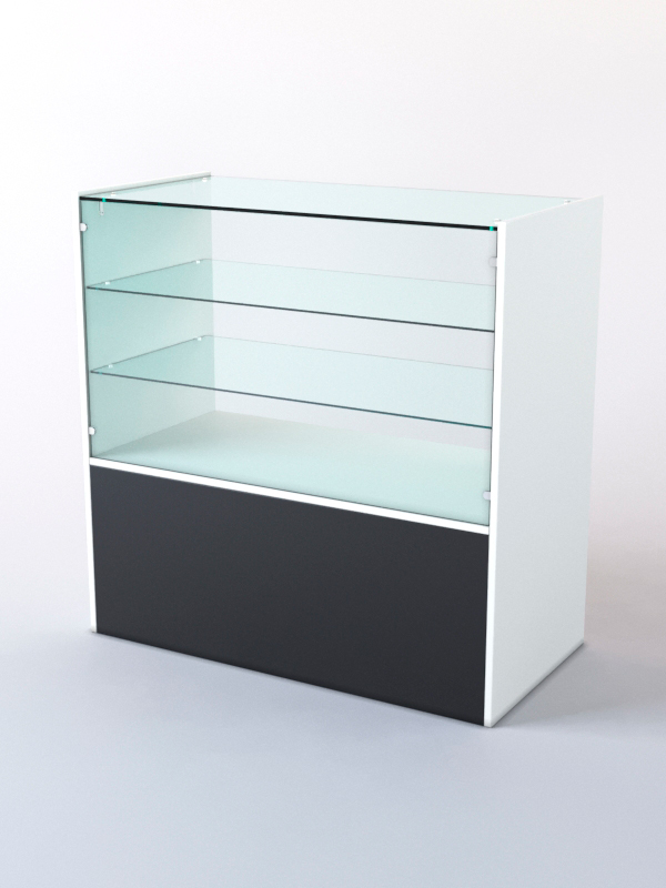 Прилавок стеклянный. Базовый прилавок, который можно использовать при взаимодействии работника зала с покупателями. Подходит для демонстрации разного типа товаров. Внутри имеется две стеклянные полки и одна полка из ЛДСП. Представляет собой отличный вариант прилавков. Прилавок подходит для реализации товаров широкого профиля. Прилавок предназначен для произведения расчетов с покупателями и может быть использован в качестве промо-стойки.