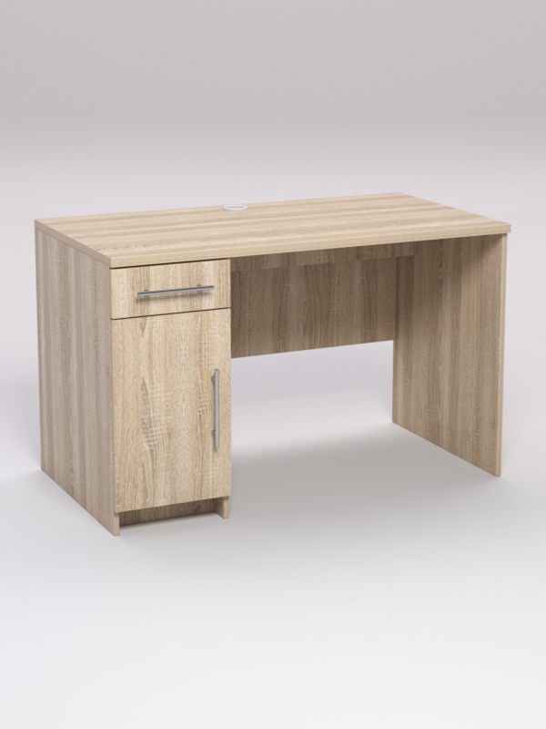 Стол состоит из столешницы, небольшого выдвижного ящика и большой полкой с дверцей.