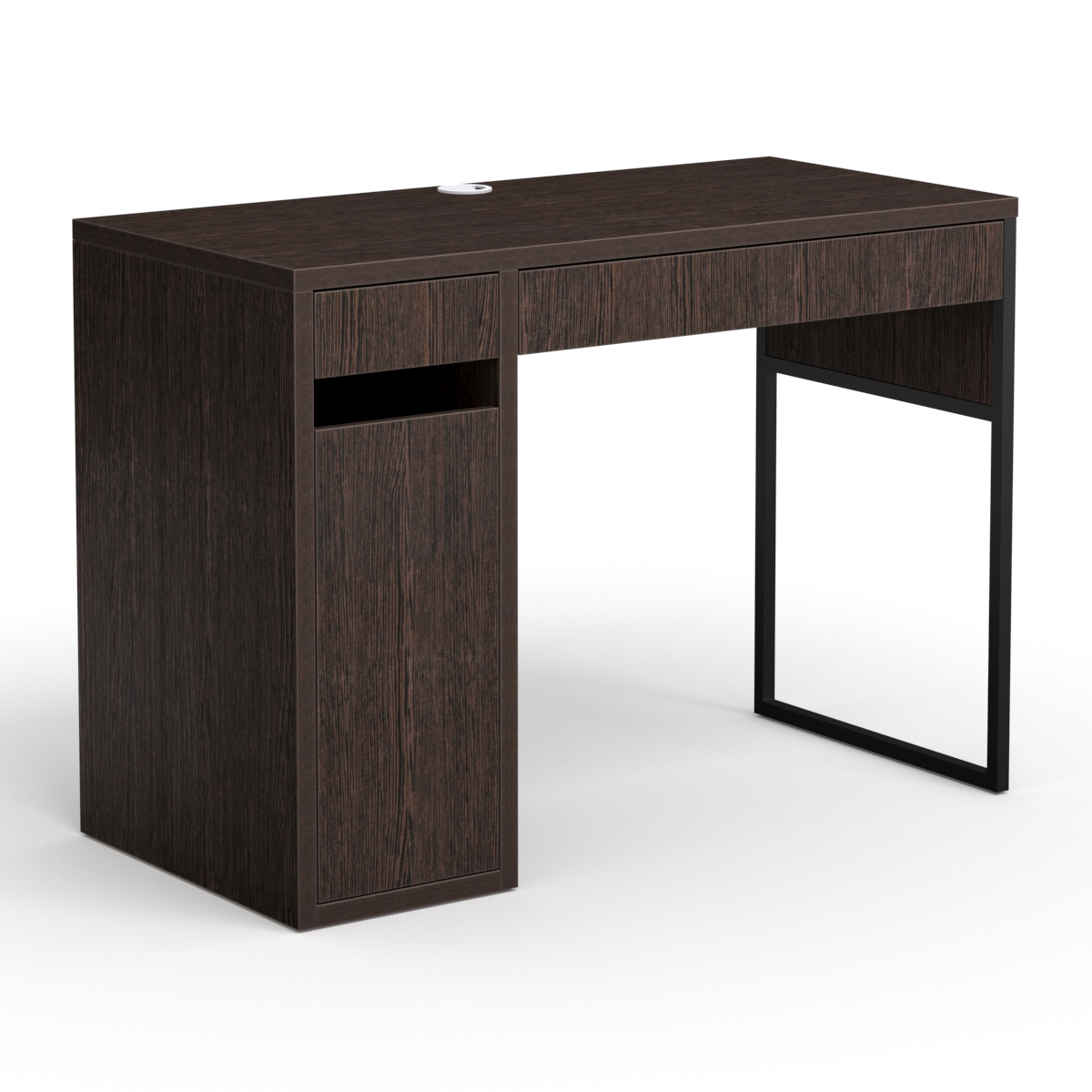 Стол состоит из столешницы, двух выдвижных ящиков и трех полок с дверцей.