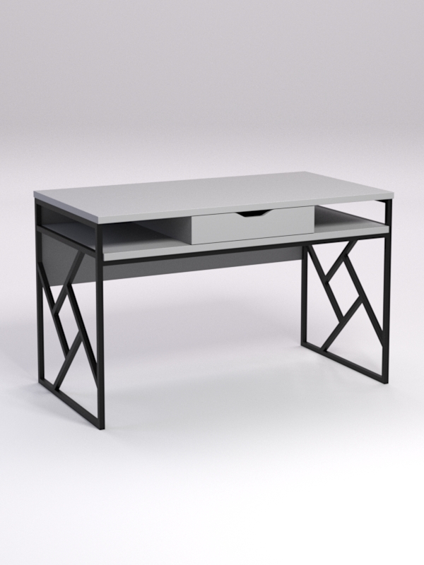 Стол состоит из столешницы и полки с выдвижным ящиком.