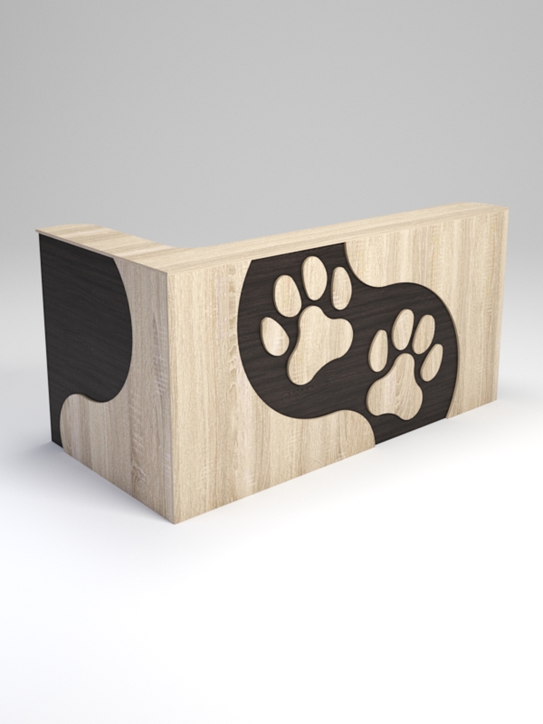 Невысокая стойка администратора, украшенная отпечатком лапы кошки, с первых минут пребывания в компании покажет вашим посетителям то, что забота о животных — главный приоритет вашей организации.